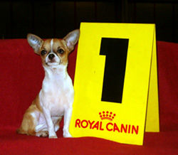 Junior World Winner 2003 - International Champion - Mediterranean Winner 2005 - Baltic Winner 2005 - Grand Champion of Russia - Champion of the Russian Chihuahua Club - Champion of Lithuania - Champion of Estonia - Champion of Moscow - 2 x Champion RKF & ROLS & ANKOR & RFOS - Eurasia 2005 Winner & Eurasia 2004 CW - Russian Chihuahua Show Winner 2003 & 2004 - Gospodin Velikly Novgorod 2003 & 2004 Winner - Top Winning SC Chihuahua Puppy in Finland 2002